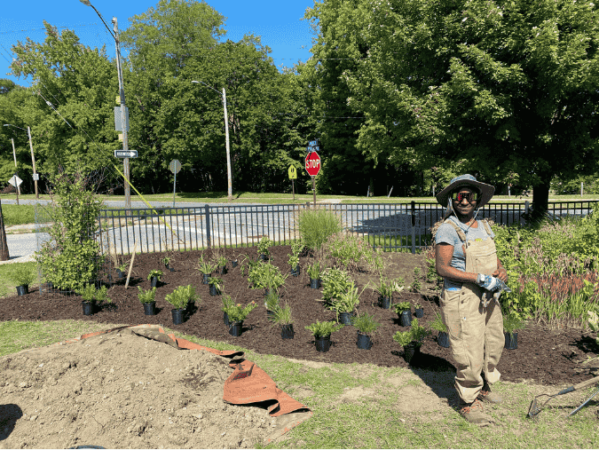 Rain garden installation at the Cleveland Metropolitan Library Rice Branch